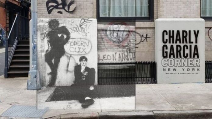 El lunes se inauguró la «Charly García Corner», en la esquina ubicada en Walker Street y Cortlandt Alley. Lugar donde el músico se sacó la foto de portada para el álbum «Clics Modernos».