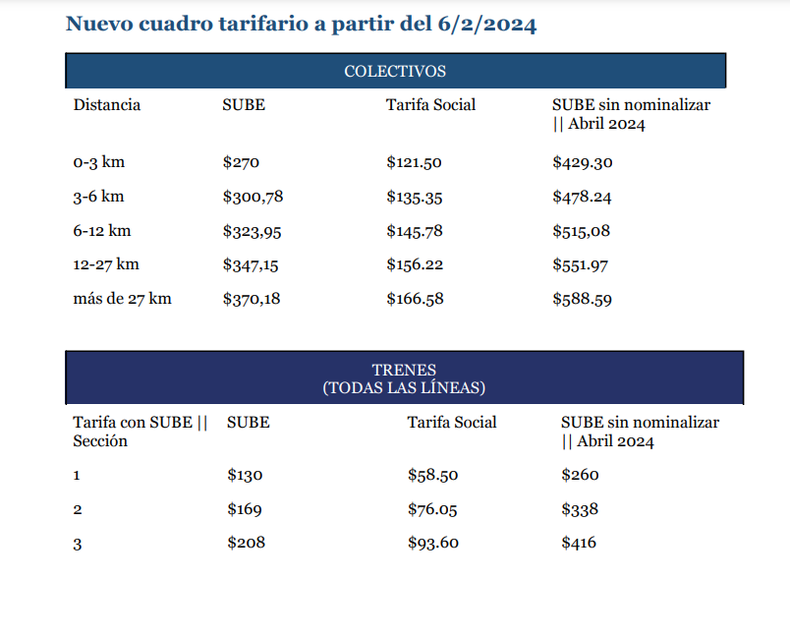 La Secretaría de Transporte confirmó a través de un comunicado que a partir del martes 6 de febrero el boleto mínimo de colectivo costará $270 mientras que el del tren costará $130.
