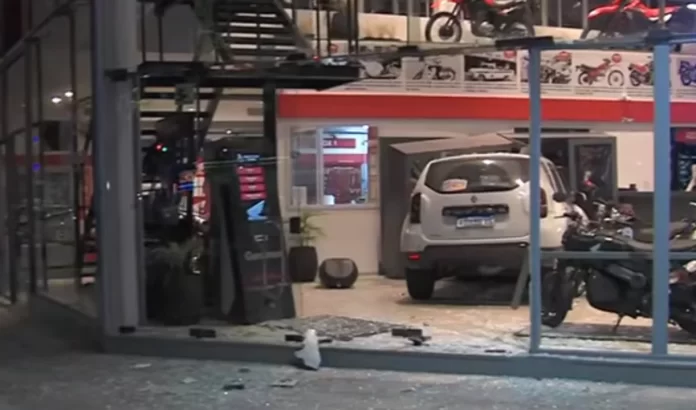 Una camioneta Renault Duster que circulaba por el barrio porteño de Floresta quedó incrustada dentro de una concesionaria de motos tras ser embestida por una moto que cruzó con el semáforo en rojo en la mañana de este jueves.